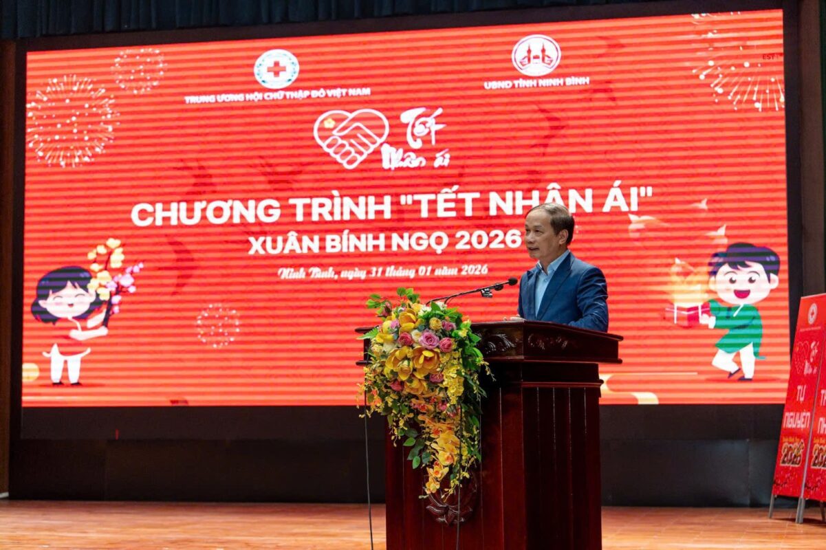 Sáng ngày 31/01/2026, tại tỉnh Ninh Bình, Trung ương Hội Chữ thập đỏ Việt Nam phối hợp với Ủy ban nhân dân tỉnh Ninh Bình long trọng tổ chức Lễ khai mạc Chương trình “Tết Nhân ái” Xuân Bính Ngọ năm 2026 cấp Trung ương. Tham dự Chương trình có các đồng chí lãnh đạo các ban, bộ, ngành Trung ương và địa phương. Về phía Trung ương có: Đ/c Phạm Tất Thắng – Ủy viên BCH Trung ương Đảng, Phó Trưởng Ban Tuyên giáo và Dân vận Trung ương; Đ/c Đặng Xuân Phong – Ủy viên BCH Trung ương Đảng, Bí thư Tỉnh ủy Ninh Bình; Đ/c Đỗ Thị Thu Thảo – Bí thư Đảng ủy, Chủ tịch Trung ương Hội Chữ thập đỏ Việt Nam. Về phía tỉnh Ninh Bình có Đ/c Hà Lan Anh – Tỉnh ủy viên, Phó Chủ tịch UBND tỉnh Ninh Bình; cùng lãnh đạo Ủy ban MTTQ VN tỉnh, các sở, ban, ngành, đoàn thể của tỉnh.