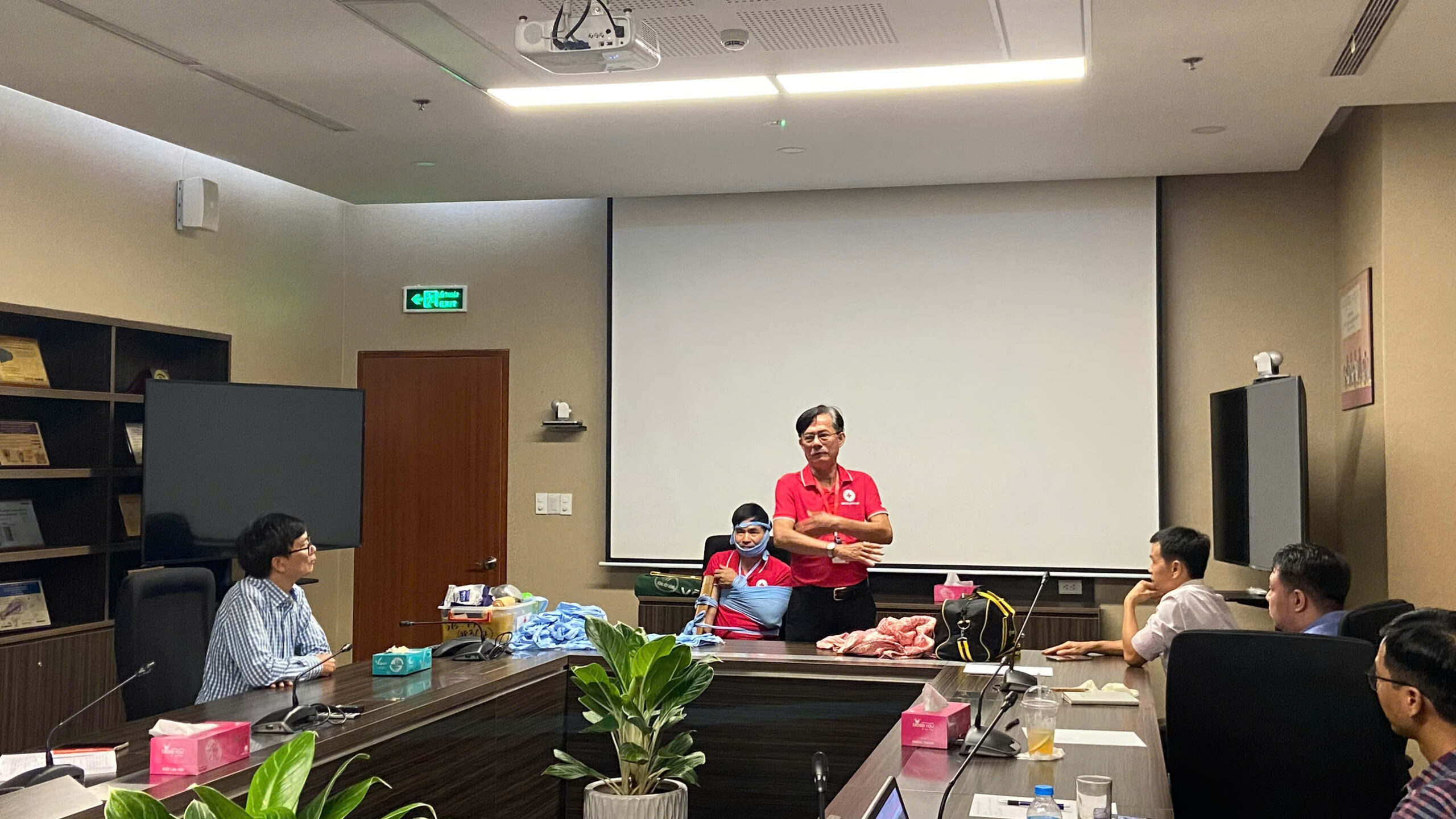Hôm nay (28/8), Trung tâm Dịch vụ nhân đạo phối hợp với Công ty Liên doanh Điều hành Cửu Long (TP. Hồ Chí Minh) tiến hành tập huấn sơ cấp cứu cho cán bộ công nhân viên.