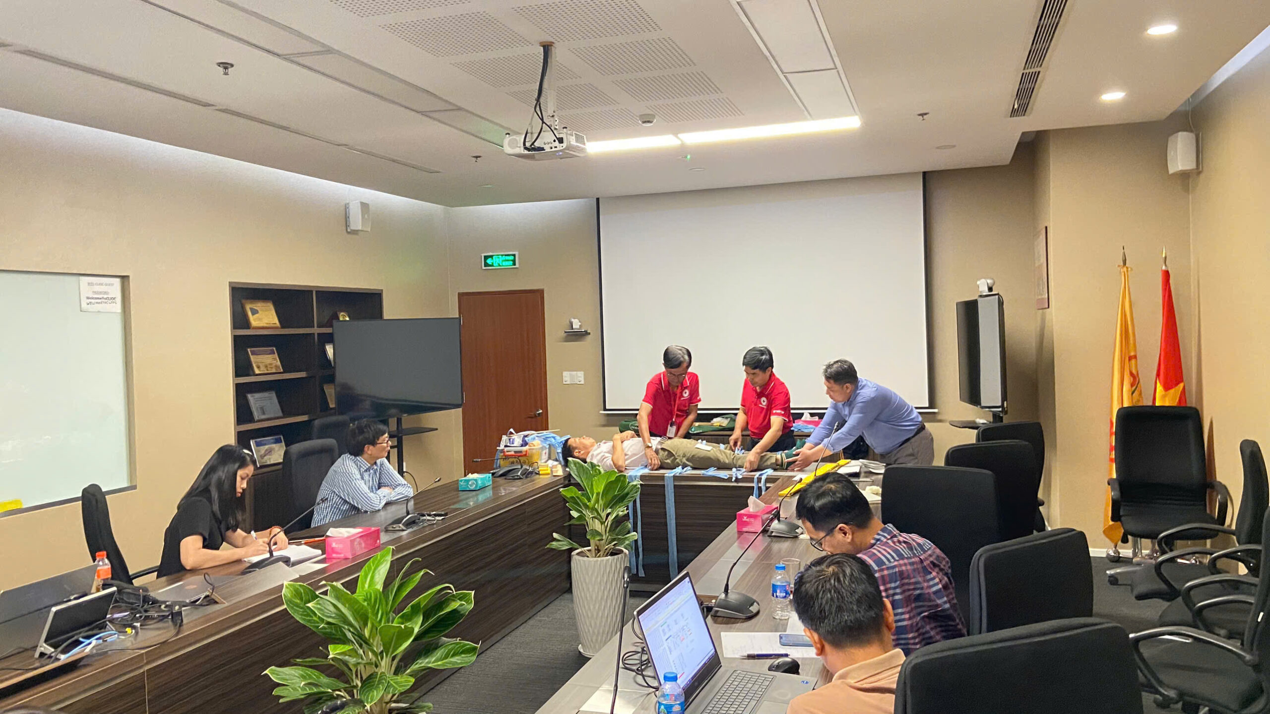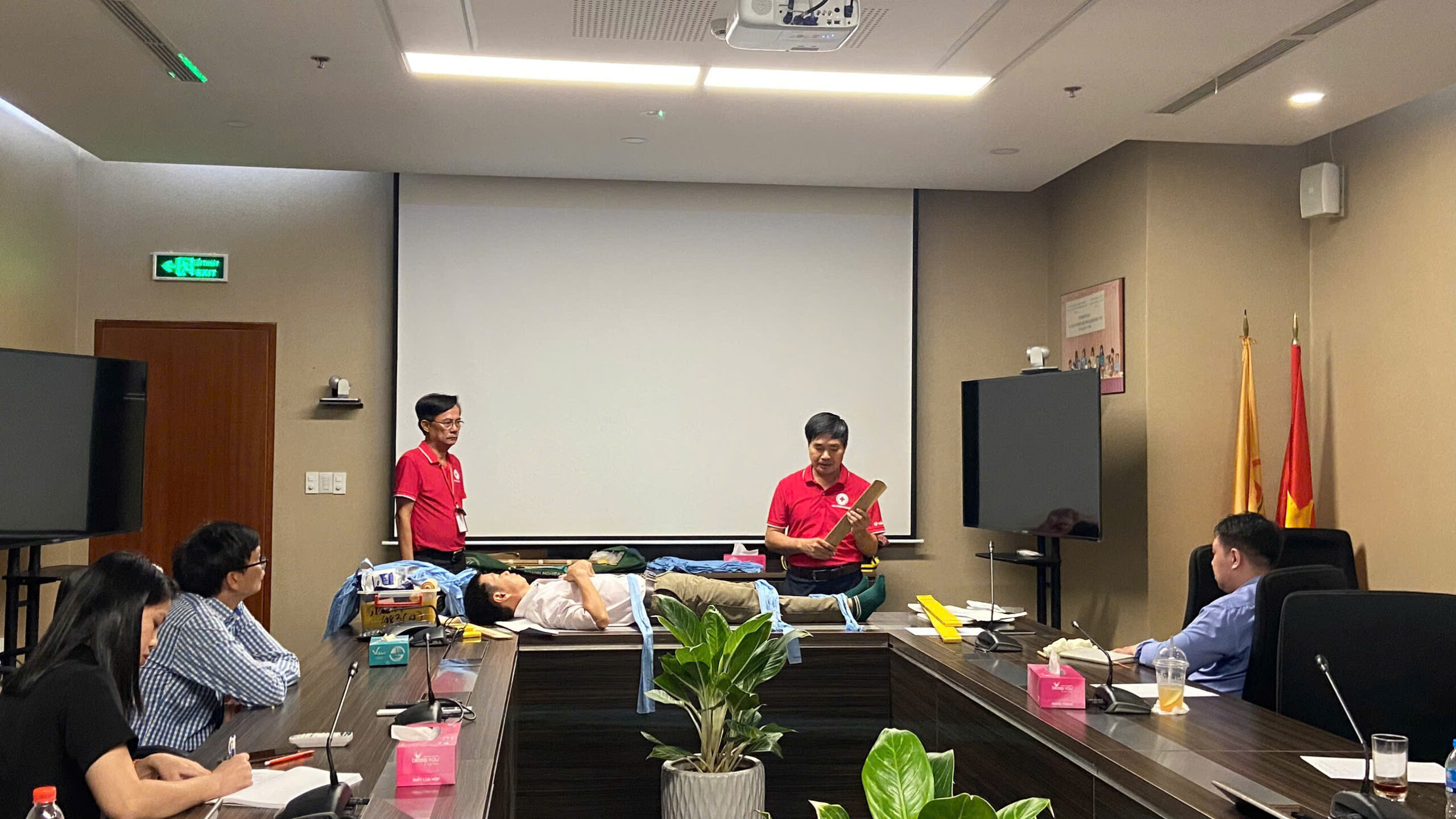 Trong đợt tập huấn lần đầu này 20 cán bộ công nhân viên của công ty sẽ được tập huấn các kỹ năng sơ cấp cứu cần thiết khi xảy tai nạn lao động như: Cách tiếp cận đánh giá bệnh nhân, cầm máu, cố định xương gãy, dị vật đường thở, vết thương phần mềm….