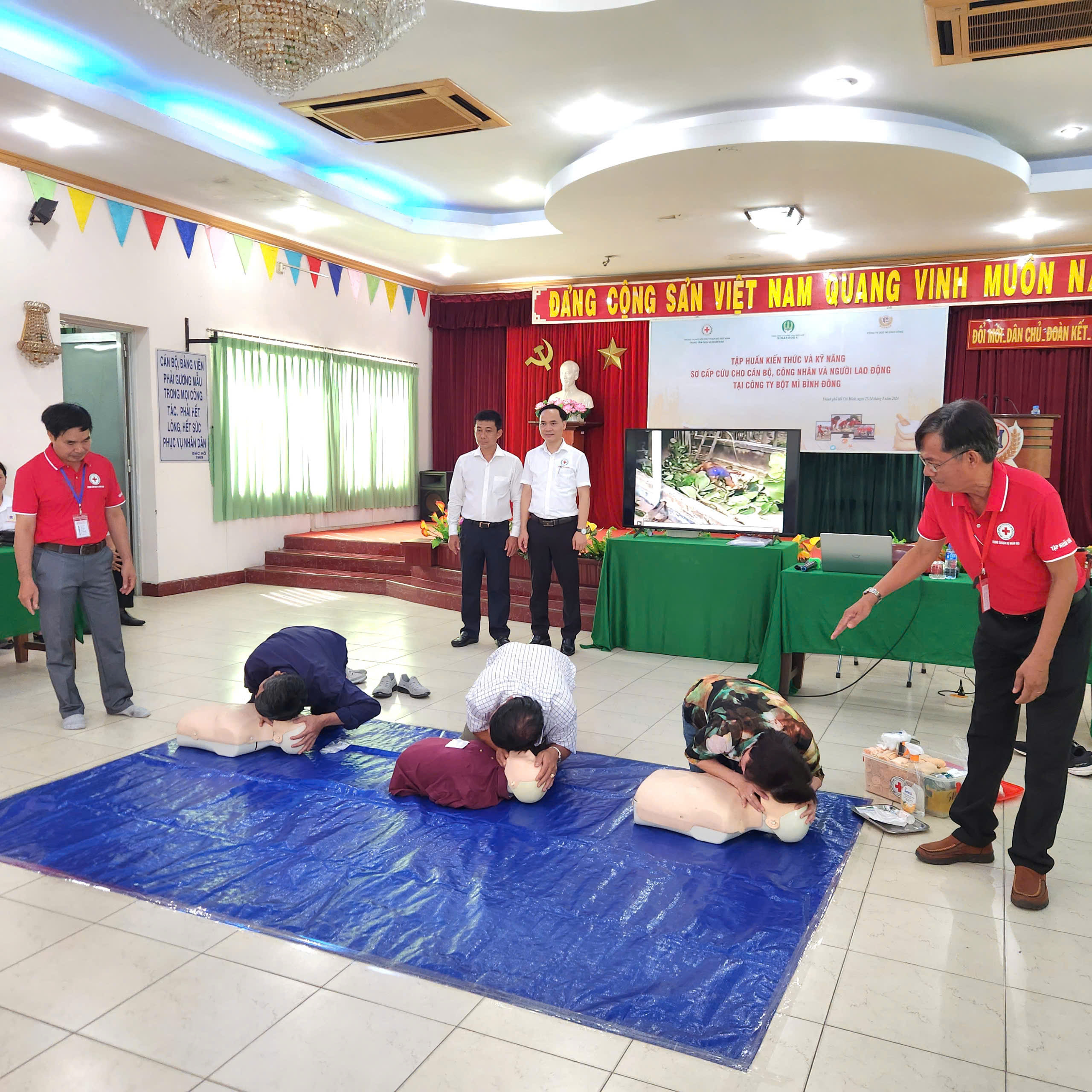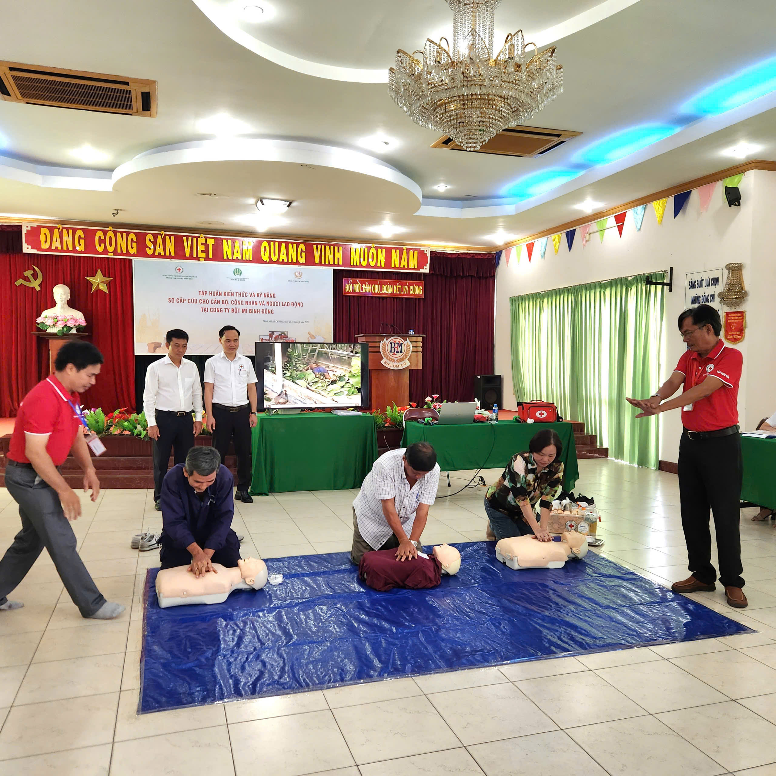 Trong 2 ngày 23 và 24/8 tại Công ty Bột mì Bình Đông, TP Hồ Chí Minh, Trung tâm Dịch vụ Nhân đạo, Trung ương Hội Chữ thập đỏ Việt Nam tiến hành đạo tạo kỹ năng sơ cấp cứu cho cán bộ công nhân công ty. Bởi đây là lực lượng làm việc tại chỗ với số lượng lớn và rất cần những kỹ năng sơ cấp cứu cơ bản khi có tai nạn xảy ra. Trong khi đó, tai nạn thương tích có thể xảy ra mọi lúc, mọi nơi nhưng lực lượng nhân viên y tế không đủ để xử lý tại chỗ. Sơ cấp cứu kịp thời, đúng cách sẽ góp phần quan trọng cứu tính mạng nạn nhân, tăng cơ hội phục hồi chức năng cho nạn nhân, giảm chi phí chữa trị cho gia đình và giảm chi phí an sinh xã hội.