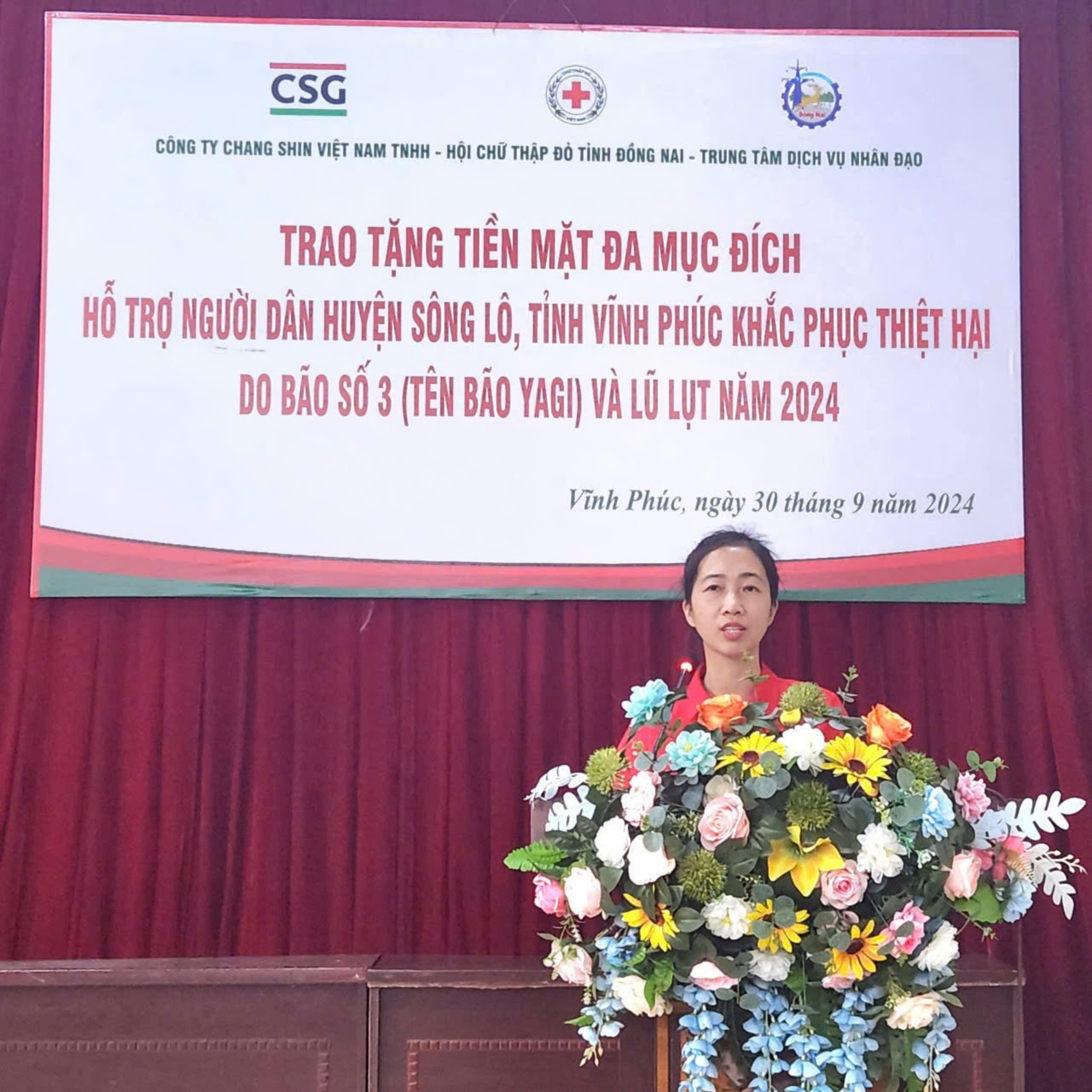 700 suất quà, trị giá 700 triệu đồng, trong đó 100 suất quà được trao cho Liên đoàn Lao động tỉnh Vĩnh Phúc để hỗ trợ các gia đình công nhân bị ảnh hưởng bởi bão lũ (1 triệu đồng/người). Phần còn lại được phân bổ đều cho các huyện Sông Lô, Tam Đảo – Nơi nhiều hộ gia đình gặp khó khăn do ảnh hưởng từ thiên tai. Nguồn lực hỗ trợ công nhân và người dân tại Vĩnh Phúc đến từ sự ủng hộ của Công ty Chang Shin Việt Nam TNHH.