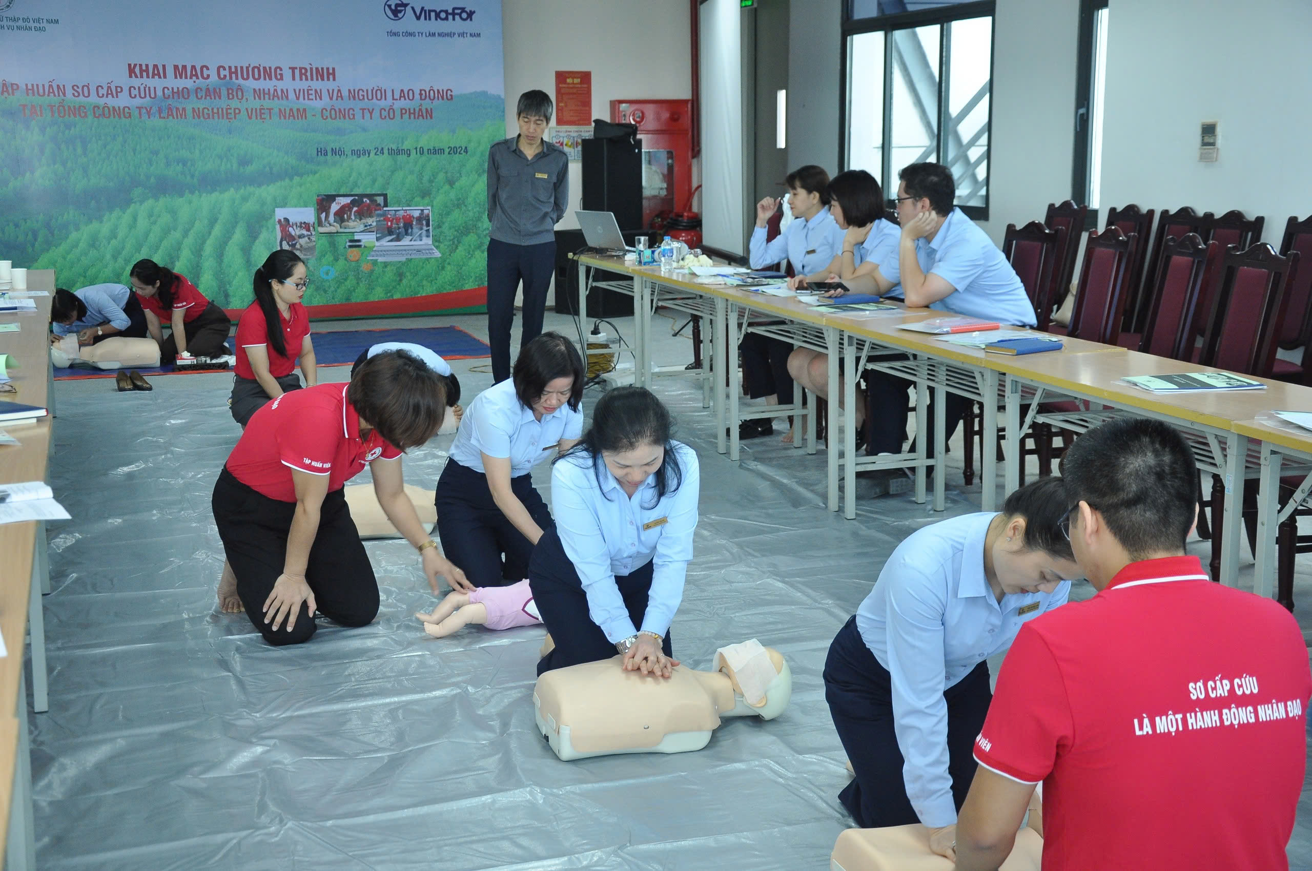 Trong 2 ngày 24 – 25/10 tại Hà Nội, Tổng Công ty Lâm nghiệp Việt Nam (VINAFOR), phối hợp với Trung tâm Dịch vụ Nhân đạo Trung ương Hội Chữ thập đỏ Việt Nam khai mạc khóa huấn luyện sơ cấp cứu (SCC) cho 50 học viên là cán bộ, nhân viên và người lao động tại Văn phòng Tổng Công ty.