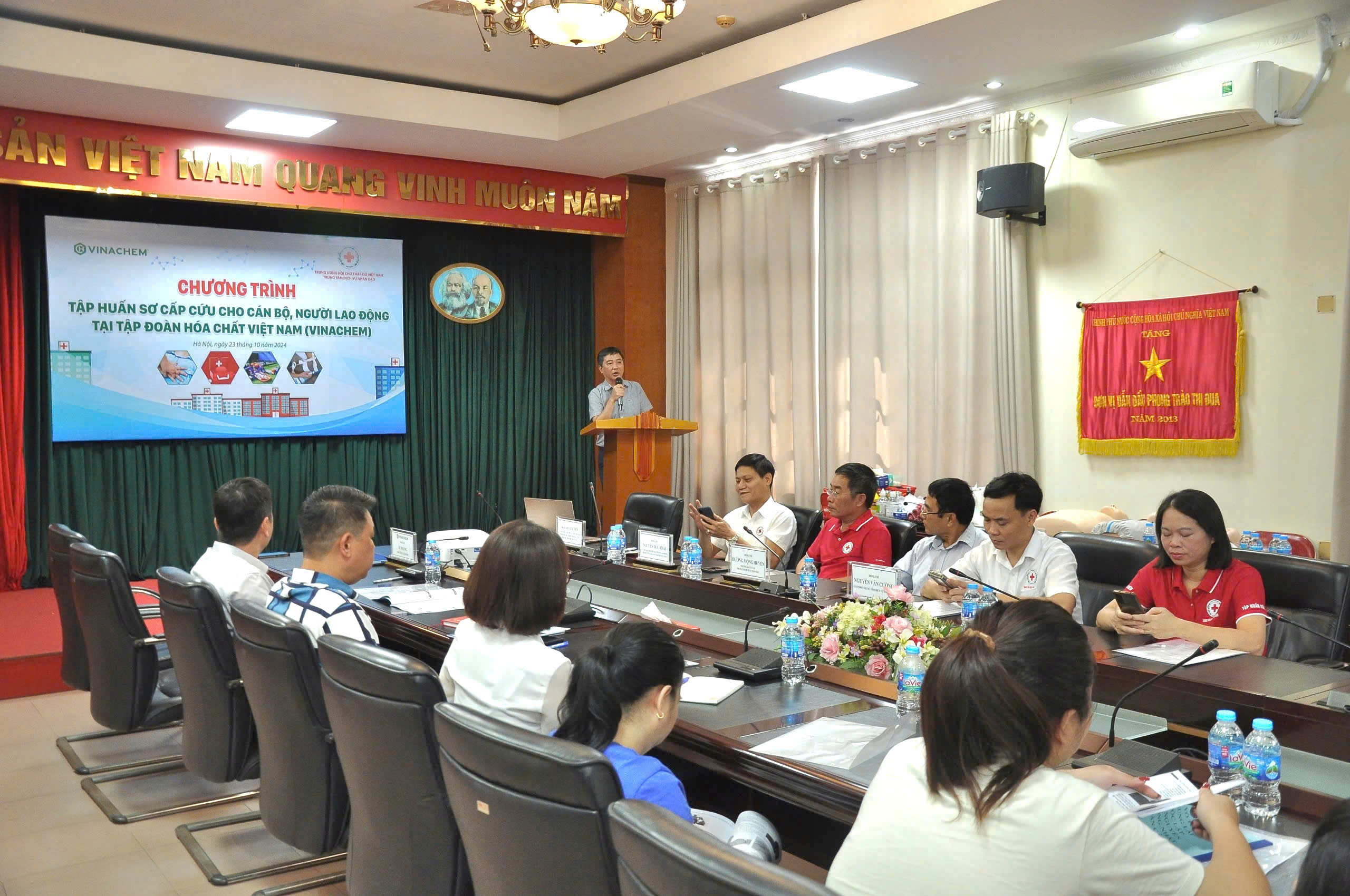 Sáng 23/10 tại Hà Nội, Tập đoàn Hóa chất Việt Nam (VINACHEM), phối hợp với Trung tâm Dịch vụ Nhân đạo Trung ương Hội Chữ thập đỏ Việt Nam khai mạc khóa huấn luyện sơ cấp cứu cơ bản cho 33 học viên là cán bộ, người lao động tại Văn phòng Tập đoàn Hóa chất Việt Nam.