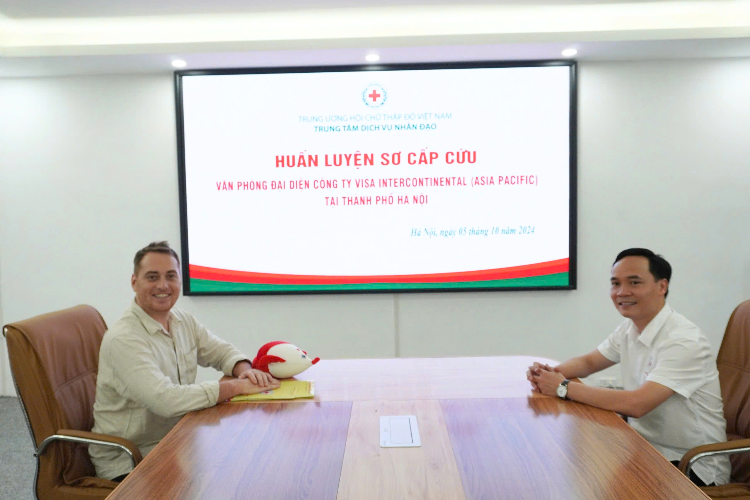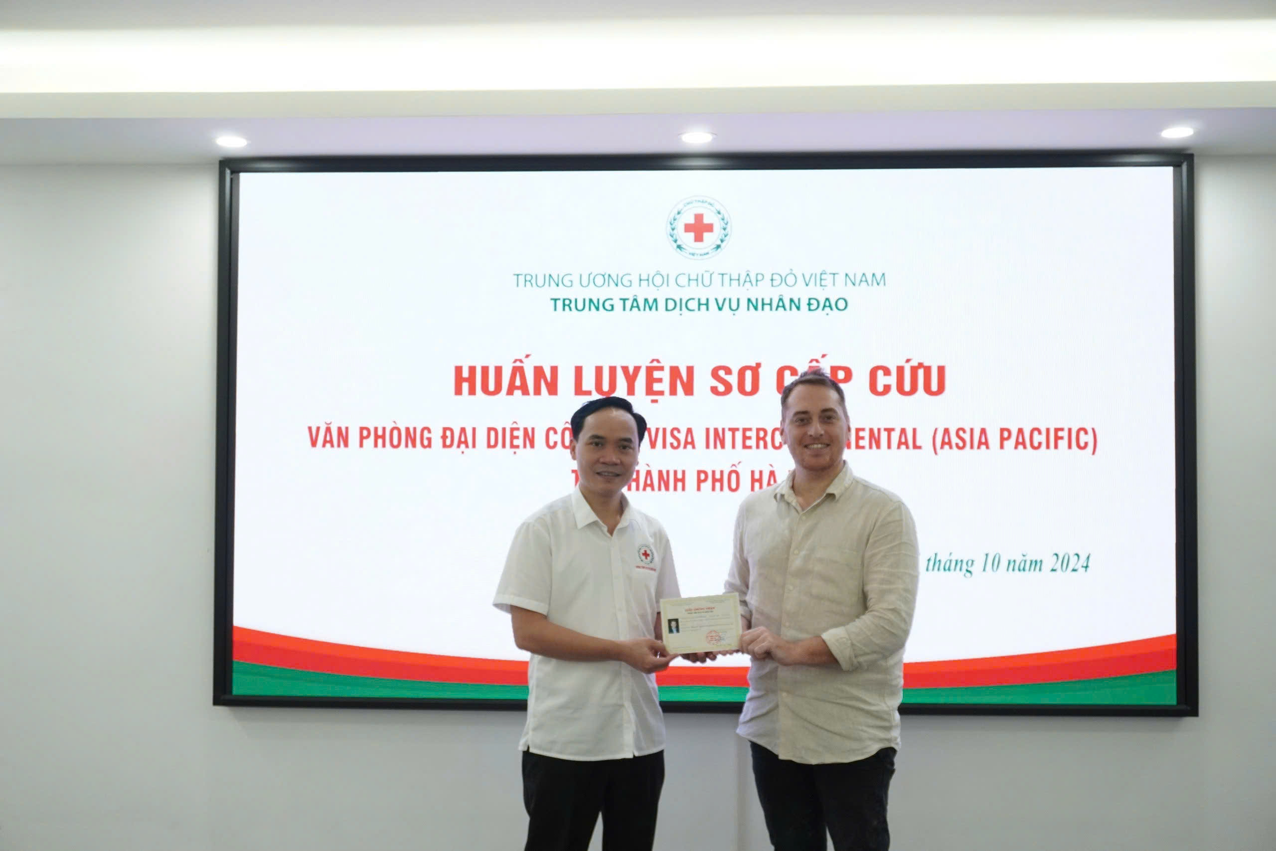 Thực hiện Kế hoạch số 252/TTDVNĐ-VP, sáng 05/10/2024, tại Trung tâm Dịch vụ Nhân đạo (TP.Hà Nội) tổ chức buổi huấn luyện SCC và cấp giấy Chứng nhận cho ông Luca Guidobaldi (Quốc tịch Ý), Giám đốc cấp cao, Kế hoạch và vận hành Việt Nam – Công ty Visa International (Asia-Pacific) tại Hà Nội.