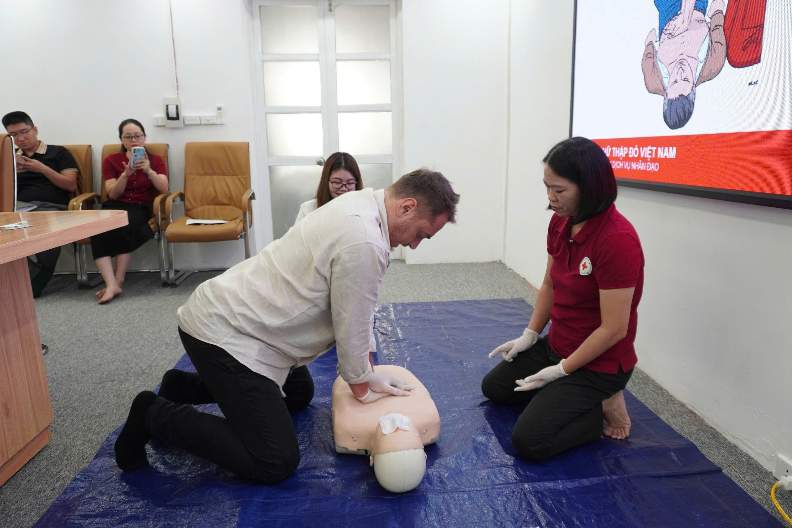 Ông Luca Guidobaldi chia sẻ rằng: “Việc học sơ cấp cứu hôm nay đã giúp tôi có được kiến thức, kỹ năng sơ cấp cứu để cứu chính bản thân tôi và những người xung quanh khi tai nạn xảy ra. Sơ cấp cứu là hành động Nhân đạo, tôi sẽ chia sẻ khóa học ý nghĩa này đến những người trong cơ quan tôi và những người bạn của tôi, cảm ơn Tập huấn viên và Trung tâm”.